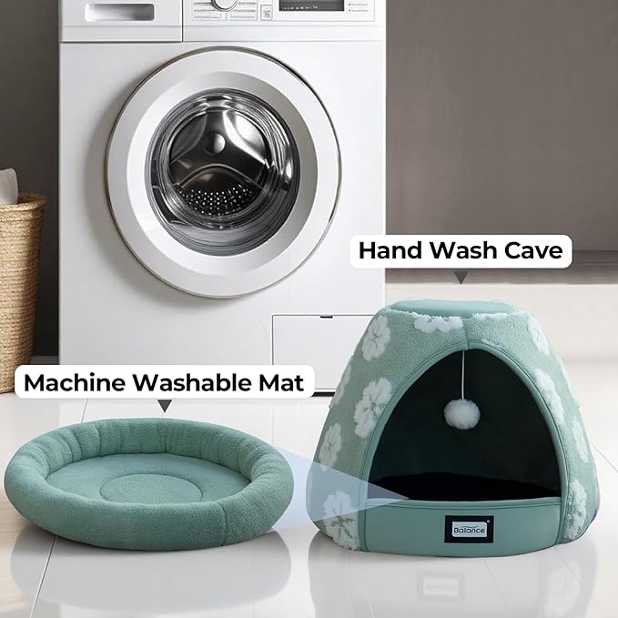 BALANCE Cat Beds for Indoor Cats, 2-in-1 Cat Bed Cave with Anti-Slip Bottom and Ultra-Soft Plush, Cozy Cats House Tent for Kittens and Small Dogs, 19 Inches, Green