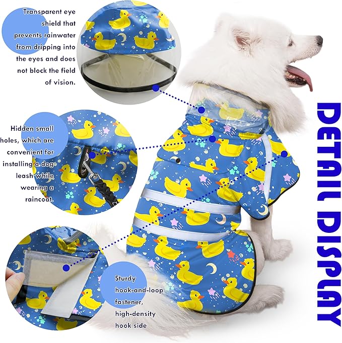 Dog Raincoat, Adjustable Rain Jacket with Hooded Double Layer for Large Medium Small Dogs Puppies, Lightweight Waterproof Rain Coat Poncho with Reflective Stripe Duck Blue,XL