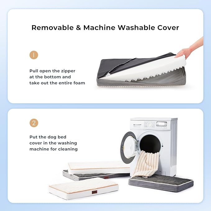 - Easy to Clean and Maintain: The cover of this dog bed is removable and machine washable, making it easy to clean. We recommend regular washing, ensuring your pet always has a clean and comfortable resting space.