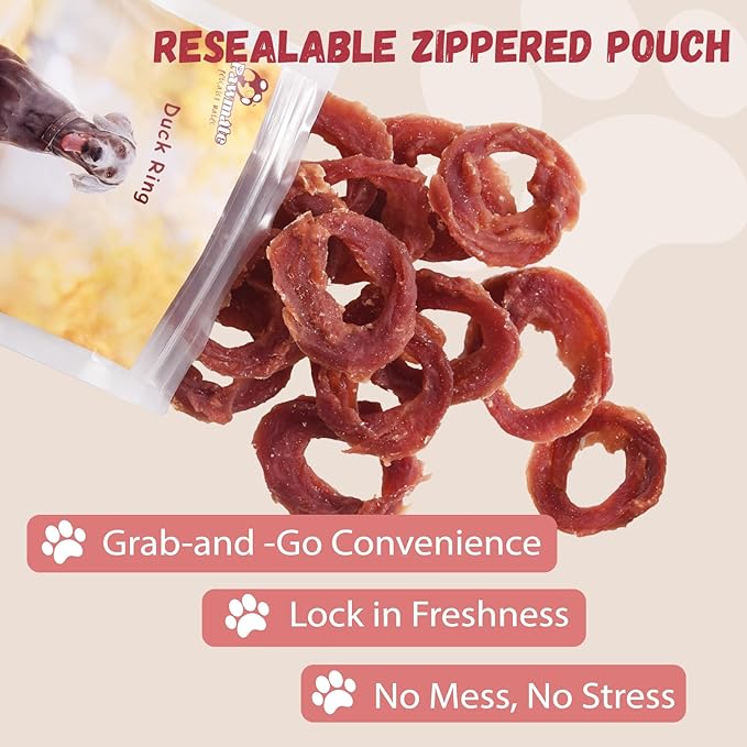 - Healthy & Nutrious Dog Treats: Duck is rich in Premium protein, vitamins and minerals, low in fat. These duck rings help maintain strong bones, a healthy heart, and a shiny coat, supporting your dog's vitality from the inside out
