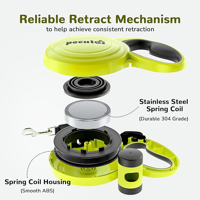 - 【Reliable Braking System】Equipped with sturdy 304 stainless steel spring coils to ensure smooth operation without jamming. The user-friendly one-button brake system allows you to easily control your dog’s range of movement. Whether letting your furry friend explore or quickly locking the leash, it’s all at your fingertips