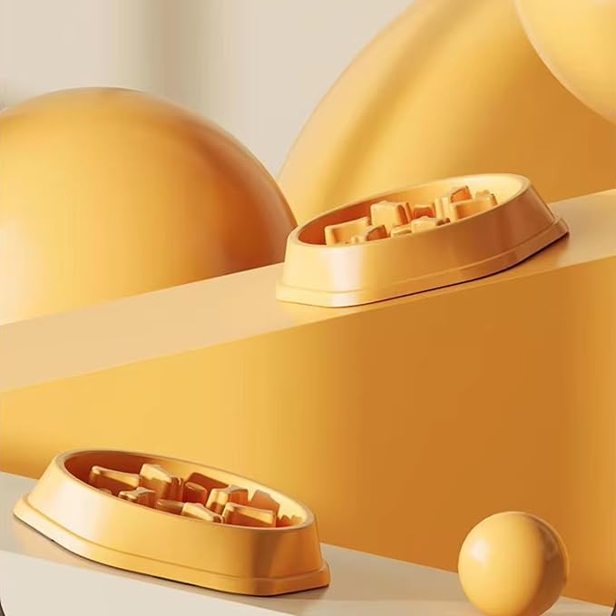 Dog Slow Feeder Bowl for Small & Medium Dogs – Anti-Choking, Non-Slip Plastic Slow Eating Dog & Cat Bowls – Puppy Bowl, Cat Food Bowl, Pet Feeder, 8.86in – Helps Prevent Bloating & Choking (Yellow)