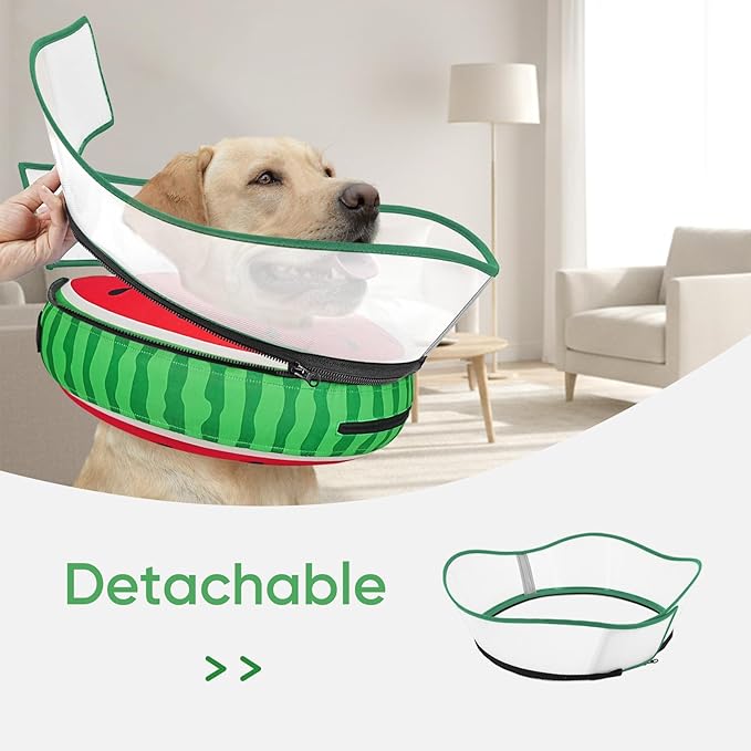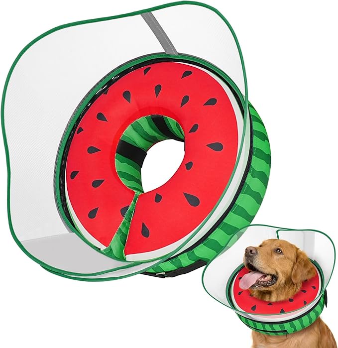 Raised Inflatable Dog Cone After Surgery - Adjustable Recovery Donut Collar with Neck Strap and Removable Anti-Licking Shield - Soft Dog Cone Alternative for Small Medium Large Dogs (Watermelon,XXL)