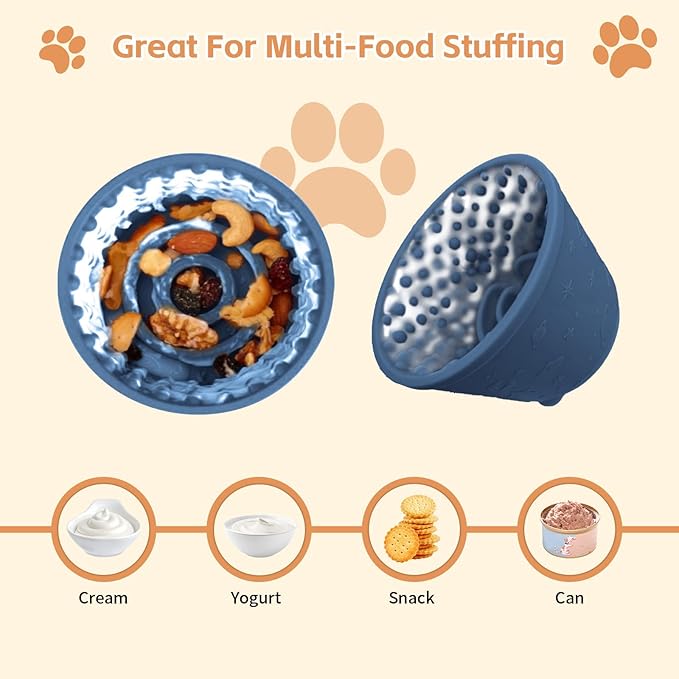 - Keep your dog focused for half an hour to an hour: The rich texture design can help your dog stay focused, distract his attention, and activate his brain. You can use several different foods such as yogurt, peanut butter, and dog food and put them in the slow-feeding bowl at the same time to supplement your dog's nutrition (can be frozen in the refrigerator)