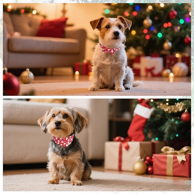 KOOLTAIL Christmas Dog Collar and Leash Set with Bowtie and Bells - Puppy Collar and Leash for Boy Girl with Snowman Matching Pattern, Soft Leather Tangle Free Leashes for Small Dogs,Cats
