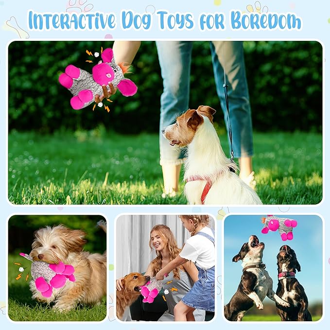 Stuffed Dog Squeak Toys, Tough Crinkle Stuffed Animal Squeaky Interactive Toys, Dog Chew Toys for Puppy, Small, Middle, Plush Chew Toys Pink Donkey
