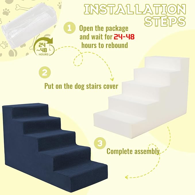 - EASY TO CLEAN: The doggie stairs comes with an easily removable washable cover, convenient for machine washing at any time. Warm tips: the inner high-density 30D foam is not washable