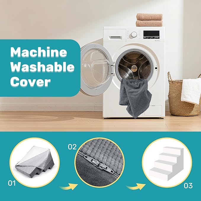 - š§¼ Hassle-Free Cleaning: The removable, machine-washable cover makes maintenance simple and effortless. Easily keep the stairs fresh and free from fur, dirt, and odors, ensuring a clean and healthy spot for your pet to use every day