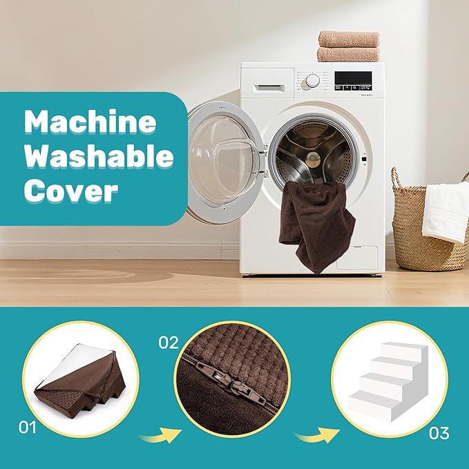 - š§¼ Hassle-Free Cleaning: The removable, machine-washable cover makes maintenance simple and effortless. Easily keep the stairs fresh and free from fur, dirt, and odors, ensuring a clean and healthy spot for your pet to use every day