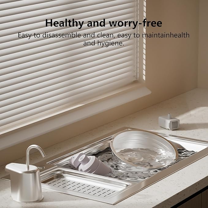- 【304 Stainless Steel】Durable & Dishwasher Safe,cat water fountain made of 304 stainless steel, it is BPA-free, rust and corrosion-proof. Only the stainless steel part can be washed in the dishwasher.
