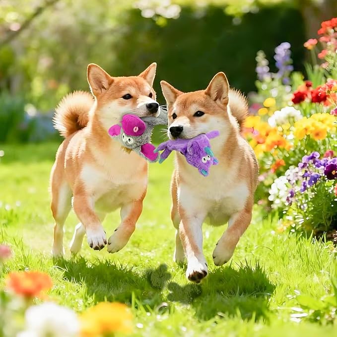 - DOG TOYS WITH SQUEAKERS & CRINKLE: The Flat Toys for Small & Medium Dogs - Each unstuffed dog toy has a big squeaker,that can get the dog's attention,keeping your dog entertained for hours. These unfilled dog toys eliminate the risk of suffocation and reduce the burden of household cleaning by preventing excessive filling from spilling out when small dogs are pulling and chewing. Enjoy a safer and cleaner gaming experience with our durable non plush dog toys.Each toy has a squeaker in it's center body area, the legs, tails, and ears all have crinkle.