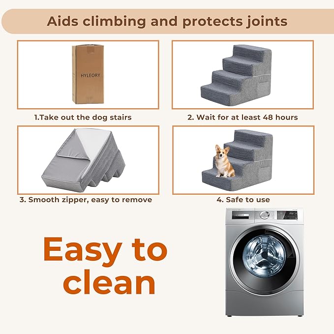 - ❤ Effortless Setup & Maintenance ❤: Arrives vacuum-sealed, expands within 48 hours with zero assembly required. Machine-washable stairs' cover with water-resistant backing protects the foam core