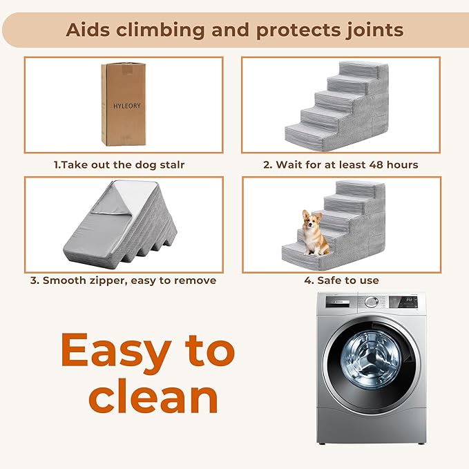 - ❤ Effortless Setup & Maintenance ❤: Arrives vacuum-sealed, expands within 48 hours with zero assembly required. Machine-washable stairs' cover with water-resistant backing protects the foam core