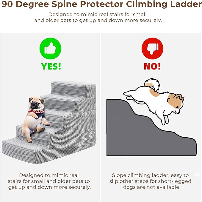 - ❤ Joint-friendly Dog Stairs ❤: Reduce dangerous jumping that can cause hip dysplasia, arthritis, and joint injuries in small and medium dogs. The 5-step stairs reduces impact stress on your pet's joints by up to 75% compared to jumping