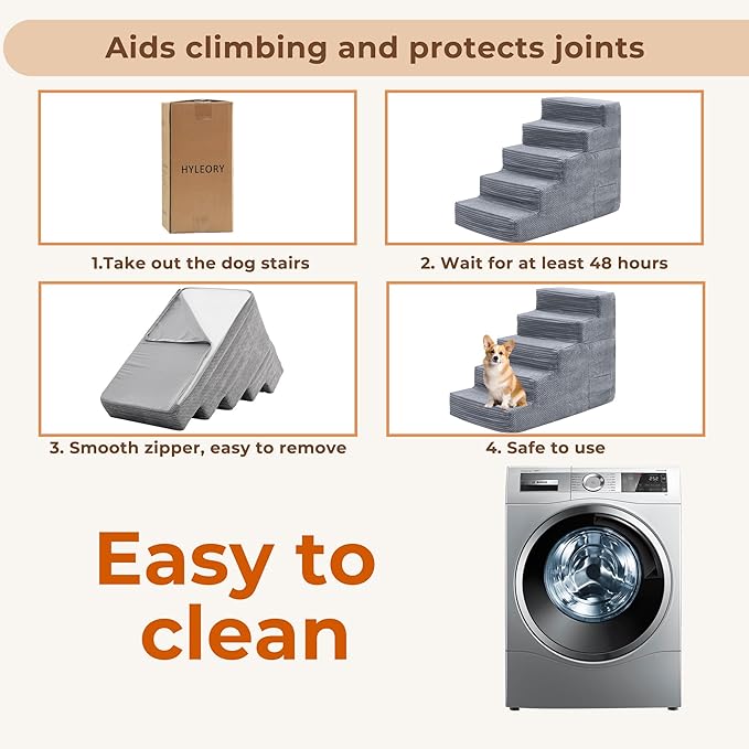 - ❤ Effortless Setup & Maintenance ❤: Arrives vacuum-sealed, expands within 48 hours with zero assembly required. Machine-washable stairs' cover with water-resistant backing protects the foam core