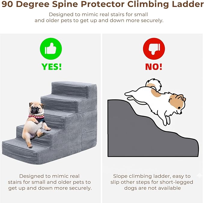 - ❤ Joint-friendly Dog Stairs ❤: Reduce dangerous jumping that can cause hip dysplasia, arthritis, and joint injuries in small and medium dogs. The 5-step stairs reduces impact stress on your pet's joints by up to 75% compared to jumping