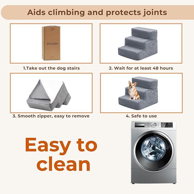 - ❤ Effortless Setup & Maintenance ❤: Arrives vacuum-sealed, expands within 48 hours with zero assembly required. Machine-washable stairs' cover with water-resistant backing protects the foam core