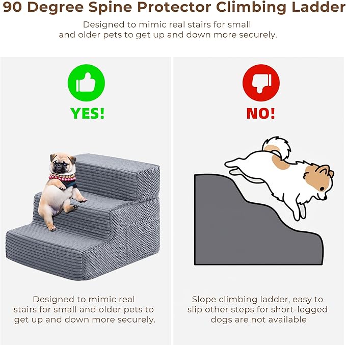 - ❤ Joint-friendly Dog Stairs ❤: Reduce dangerous jumping that can cause hip dysplasia, arthritis, and joint injuries in small and medium dogs. The 3-step stairs reduces impact stress on your pet's joints by up to 75% compared to jumping