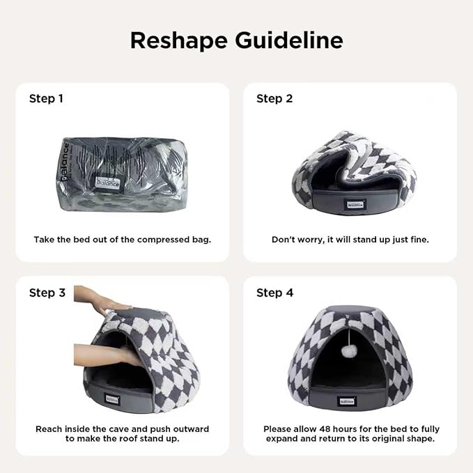 - Care Tips: The inner cat mat is machine washable. The outer cat cave can be wahsed by hand. For best results, allow the kitten bed to fully expand and regain its shape within 48 hours after unpacking