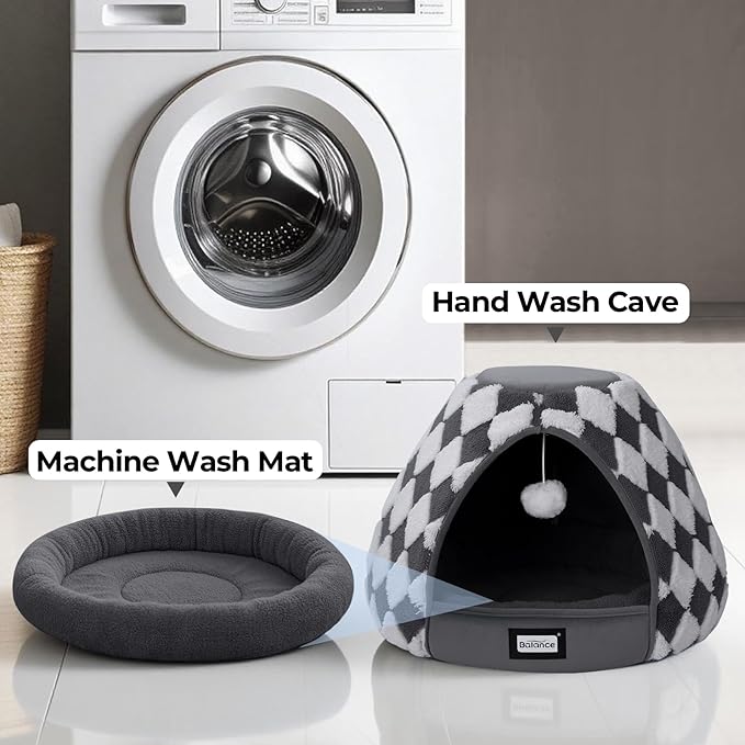 BALANCE Cat Beds for Indoor Cats, 2-in-1 Cat Bed Cave with Anti-Slip Bottom and Ultra-Soft Plush, Cozy Cats House Tent for Kittens and Small Dogs, 21 Inches, Dark Grey