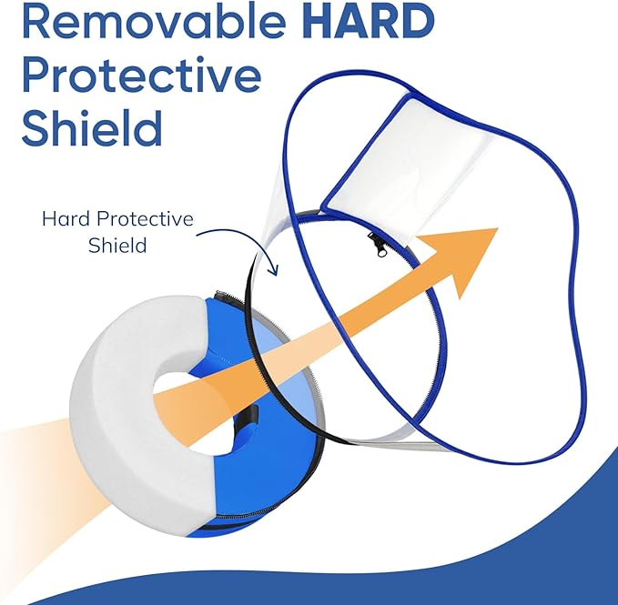 - Extra Protective Shield - The dog neck donut pillow after surgery features a detachable hard shield that adds firm protection to prevent licking, biting, or scratching sensitive areas. This upgraded structure is especially useful for active or stronger dogs who typically break or bend soft dog head cones. Simply attach or remove the shield based on your dog’s recovery needs.