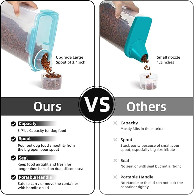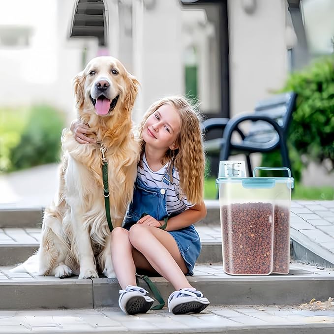 - WHAT YOU GET?:The small dog food bin comes with a 1-pack airtight pet food storage container with a clear measuring cup and an upgraded large spout for easy pouring of pet food at any time. This dog food storage containers can be a gift The perfect gift for any home.