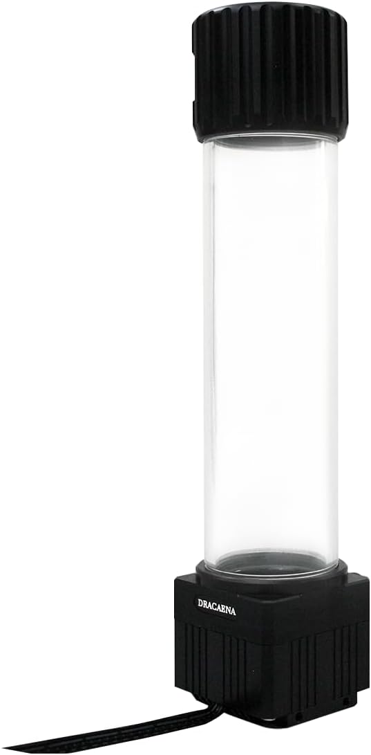 Dracaena.io High Flow 780L/H PC Water Pump Reservoir Combo, 12V 18W Brushless Microprocessor Pump, 5–6m Head, G1/4” Thread, Acrylic+POM Tank 600ml, 4-Pin Connector, Black