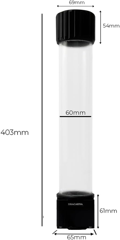 - FLEXIBLE TANK OPTIONS – Choose between 100ml, 200ml, 400ml, or 600ml reservoirs crafted from acrylic and POM with aluminum alloy reinforcement. Tank height options of 153mm, 203mm, 303mm, or 403mm adapt easily to different case layouts, while a 60mm body diameter and 69mm cover provide durability and a professional look.