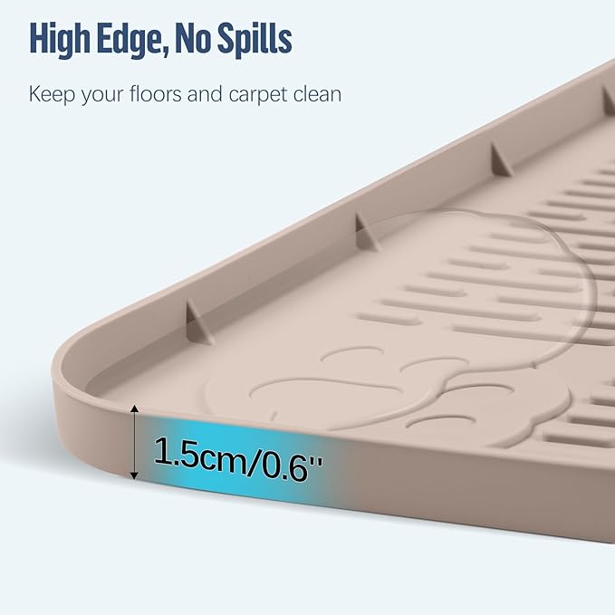 Pee Pad Holder for Dogs, 34" x 22" Silicone Pee Tray Mat Leak-Proof, High Edge, No Spill Pet Pad Holder for Puppy, Cat, Rabbit, Training Pads for Floor Protection, No Pee Pads (Khaki)