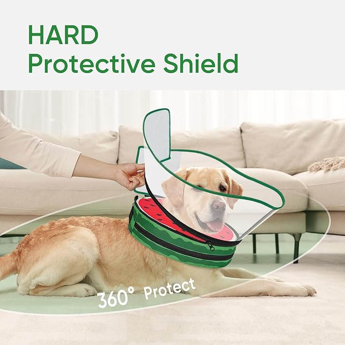 Sponge Dog Cone Collar, Dog Recovery Collar Alternative with Detachable High Clear Shield, Adjustable Soft Neck Cone for Small Medium Large Dogs, Stop Licking After Surgery (Watermelon,S)