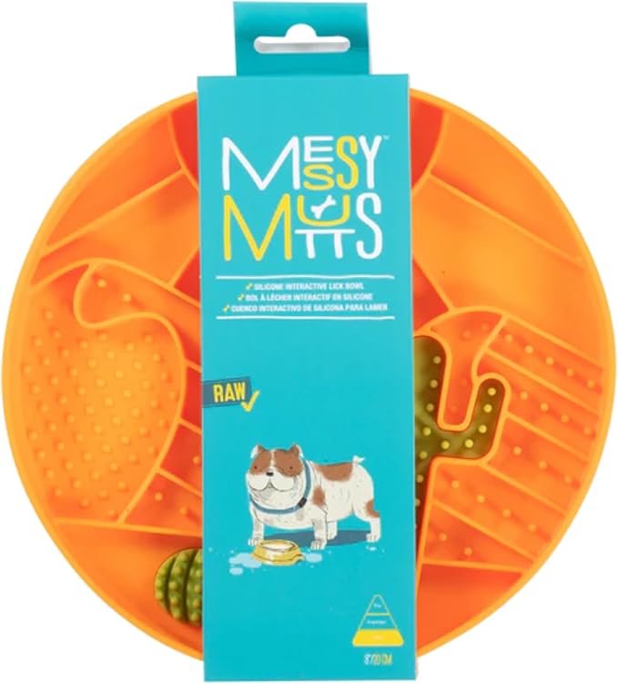 Messy Mutts and Cats Interactive Slow Feeder | Desert Orange - 2 Cup Capacity | 8” Round Silicone Puzzle Slow Feeder for Dogs/Cats | Enrichment Food Dish for Slow Eating, Bloating