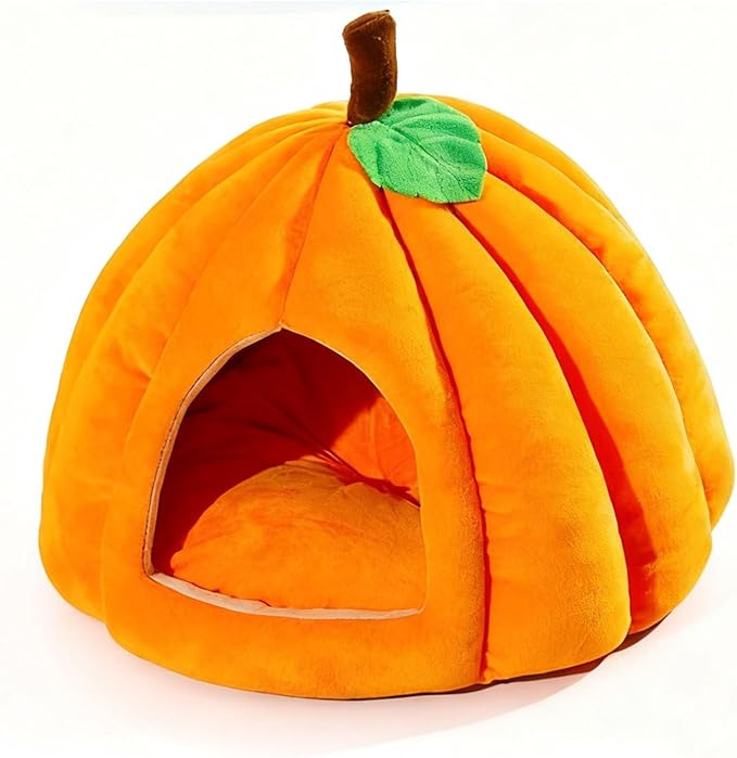 - 【Charming Pumpkin Cat Bed】Cute 3D pumpkin design creates a cozy cat cave that blends playful seasonal style with comfort. This semi-enclosed pet bed provides warmth, security, and a decorative touch for your home.
