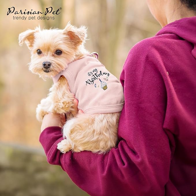 Parisian Pet Dog T-Shirt with Embroidered 'Its My Birthday' Words - Dog Birthday Clothes - Sleeveless, Lightweight Pet Vest - Pink Washable Shirt for Large Dogs 5XL