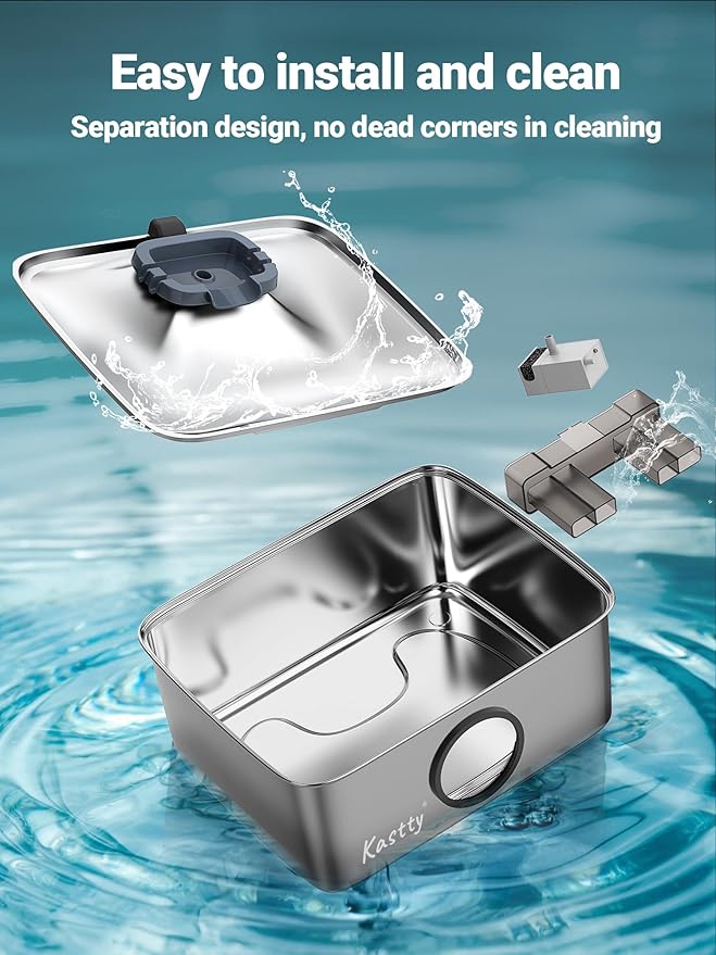 - Note: According to the cat's drinking habits, the cat water fountains stainless steel is designed from the side to meet the drinking needs of different pets. For the best health of your pet, we recommend replacing the filter(L05:B0DXPCYBXQ) and sponge and cleaning the pump(P05:B0F6CWN4B1) and water dispenser every 1-2 weeks
