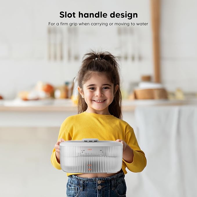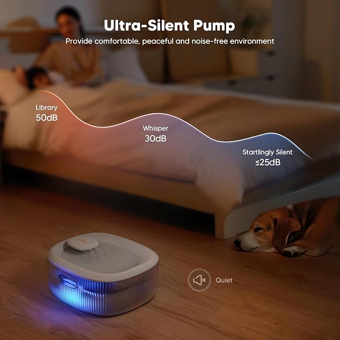 - 【Peaceful and Safe Drinking Environment】 Super quiet (<30dB) pump from automatic water dispenser for dogs has low energy consumption + an anti-dry burning design, which gives your pets 100% drinking safety. And all parts of this pet water dispenser are made of high-quality food-grade ABS resin, BPA-free, healthy, hygienic, durable, and easy to clean.