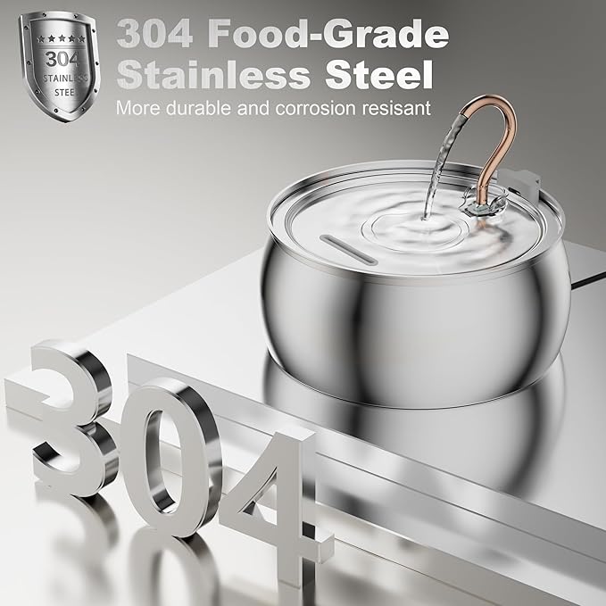 - This fountain is made from premium 304 stainless steel for durability and maximum hygiene.