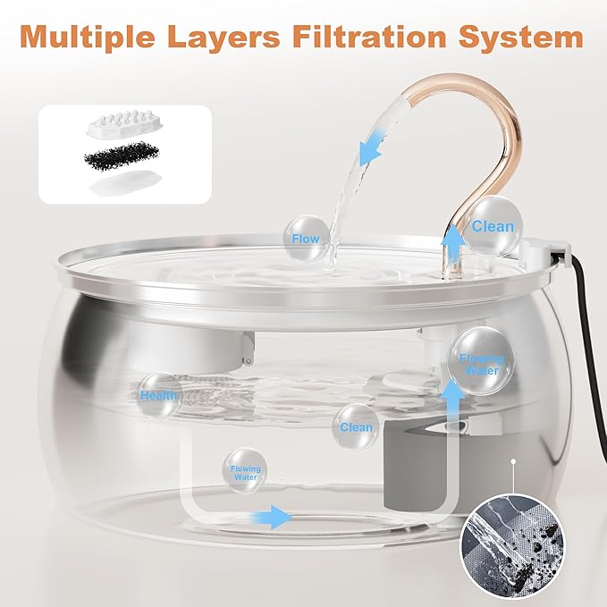 - The ultra-quiet pump operates at less than 20dB, creating a serene environment for furry friends to drink peacefully.