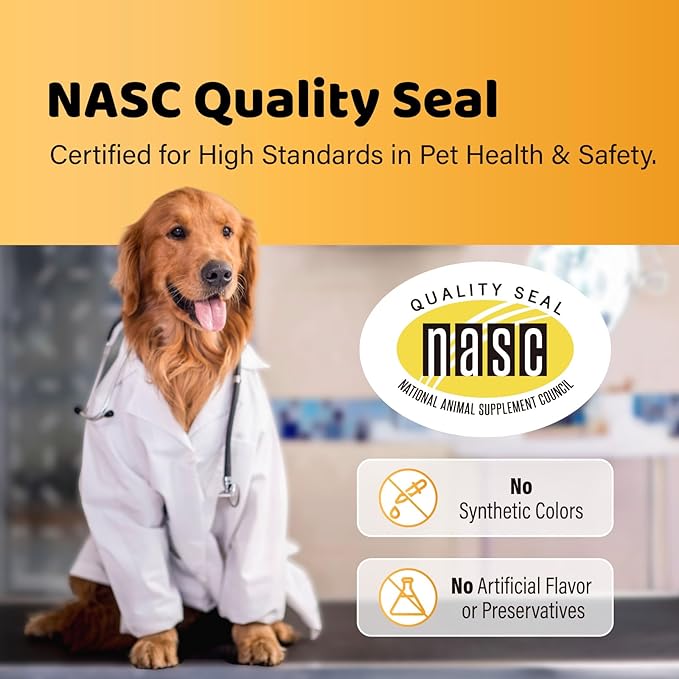 - NASC Certified & Vet-Developed: Formulated by veterinarians and certified by the National Animal Supplement Council (NASC) for trusted quality.