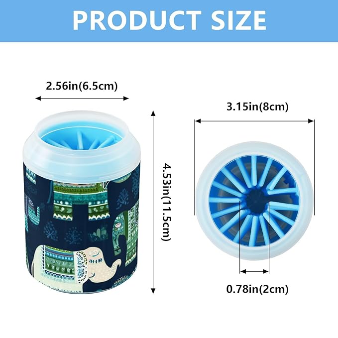 Dog Paw Cleaner Cups for Dogs Pet Foot Washer Paw Scrubber for Medium Small Dogs Cats Cleaning Cup Ethnic Geometric Elephants