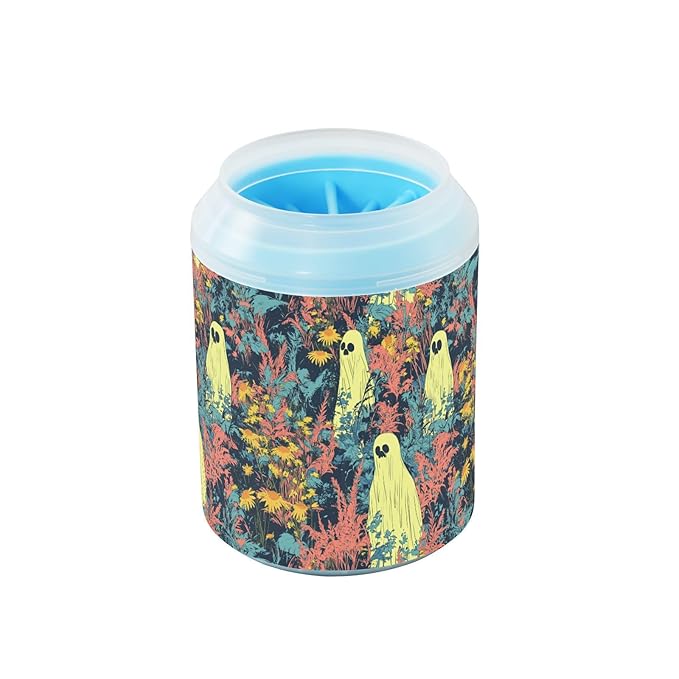 Dog Paw Cleaner Cups for Dogs Pets Foot Washer Paw Scrubber for Medium Small Cats Dogs Cleaning Cup Yellow Pop Art Ghost