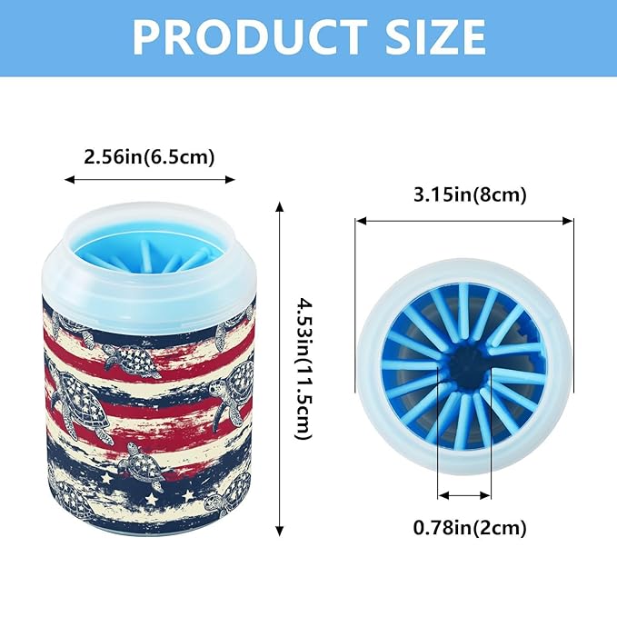 Dog Paw Cleaner Cups for Dogs Pets Foot Washer Paw Scrubber for Medium Small Cats Dogs Cleaning Cup Sea Turtles and Flag