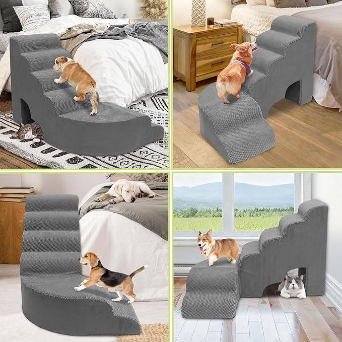 - Multi-functional Dog Stairs: Our pet step can be used not only on the left corner of the bed, but also on the side of the bed or close to the balcony. The small hole at the bottom of the stairs can be used for cats to rest or play
