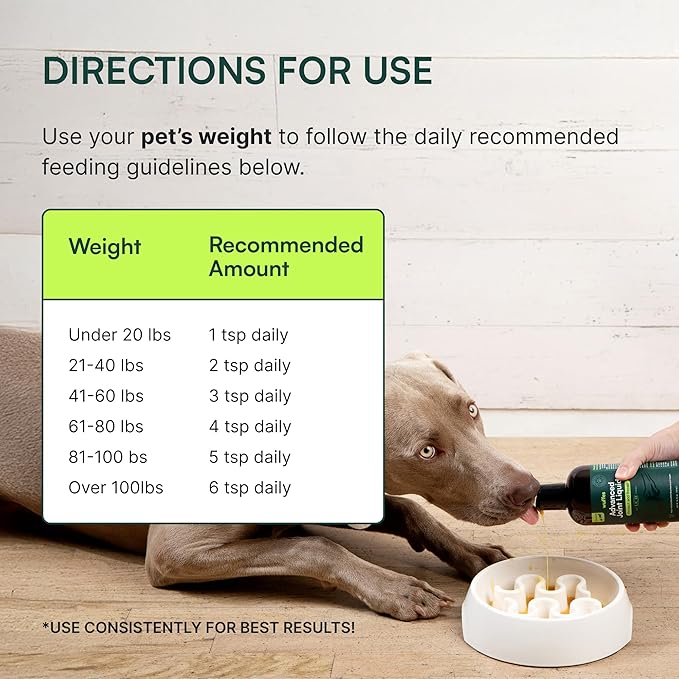 - Powerful Joint Support for Dogs: Wuffes Advanced Joint Liquid is a premium dog joint supplement designed to help maintain hip and joint health, promote mobility, and support comfort - especially for senior dogs or picky eaters who prefer an easy-to-give liquid glucosamine formula.