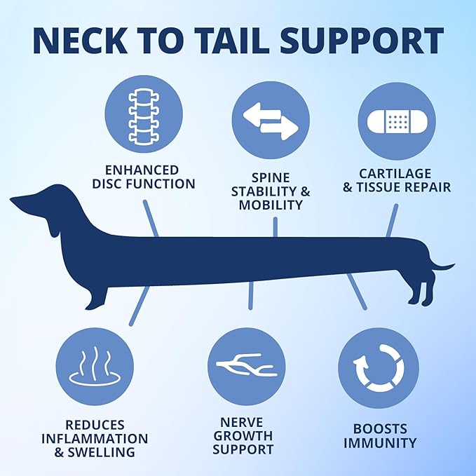 - Comprehensive Spine Support from Neck to Tail: Specially crafted for dogs' spinal health, this Disc & Spine Health Powder supports disc function, enhances spine stability, and helps reduce the strain that can lead to disc degeneration. Ideal for large breeds prone to Intervertebral Disc Disease (IVDD), it promotes a healthy spine so your dog can stay active, comfortable, and confident on daily walks and play.