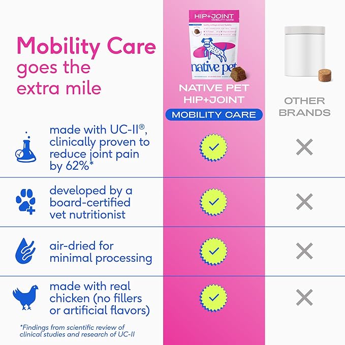 Native Pet Hip & Joint Supplement for Dogs - Advanced Dog Joint & Arthritis Supplement - Helps Maintain Healthy Cartilage, Joint Flexibility, Lubrication, & Function - with ESM & Collagen - 60 Chews