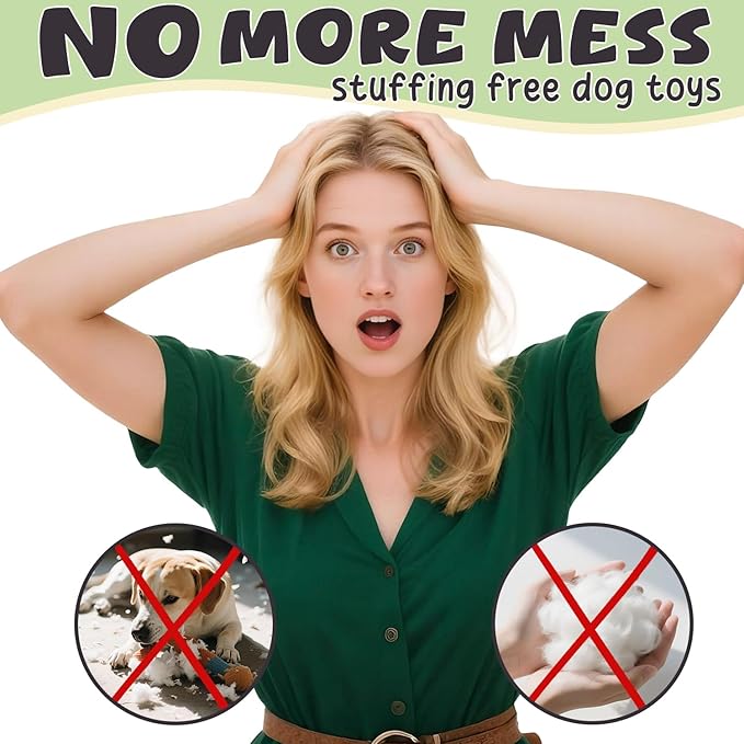 - No Stuffing Squeaky Toys: Crinkle paper all over the body and a squeaker in the head, keeping your dog entertained for hours. 100% unstuffed means that no dangerous stuffing hidden in our toys, no swallowing or choking risks and you won’t find yourself cleaning bits of stuffing from all over the house ever again.
