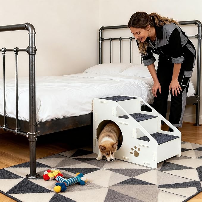 - Convenient to Clean: Dog steps for bed feature smooth stain-resistant surfaces that wipe clean instantly , reducing cleaning costs and ensuring effortless daily upkeep, perfect for busy owners who want a tidy home environment without spending extra time on maintenance