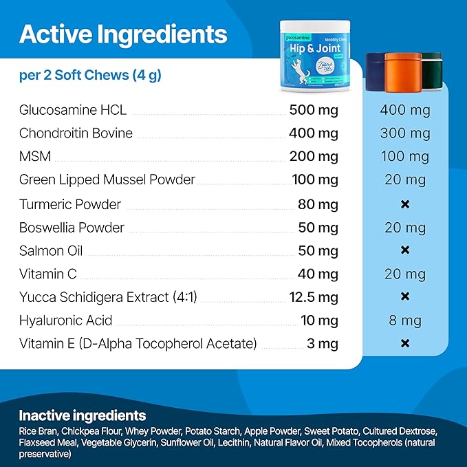 - Mobility & Comfort: Veterinarian-dosed actives make this a reliable dog joint supplement, supporting cartilage, lubrication, and daily movement while offering thoughtful joint pain relief for dogs without harsh extras - glucosamine chondroitin for dogs.