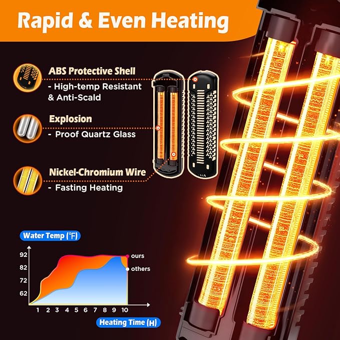 - Durable Quartz Fish Tank Heater: This aquarium heater is built with quartz heating rods that deliver fast, even, and efficient heat transfer. Its heat-resistant ABS shell and controller provide reliable performance, safe operation, and long-lasting durability.