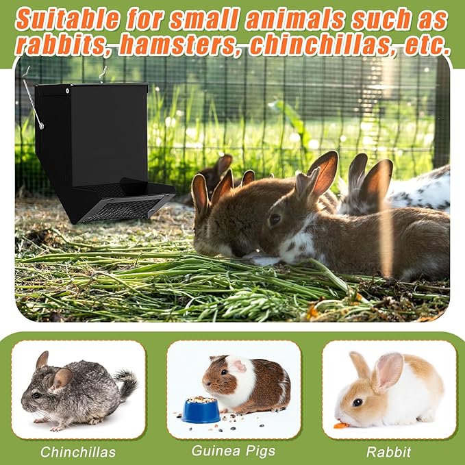 - Top Lid and Mesh Design: the rabbit feeder's design includes a top lid that keeps out dust and debris; The bottom mesh design filters out rainwater promptly, preserving the feed's dryness